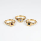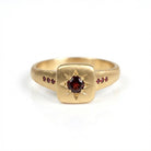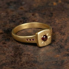 טבעת חותם אסימטרית ואוורירית בעיצוב גיאומטרי מודרני, עשויה זהב 14K בגימור מט עדין בעבודת יד.