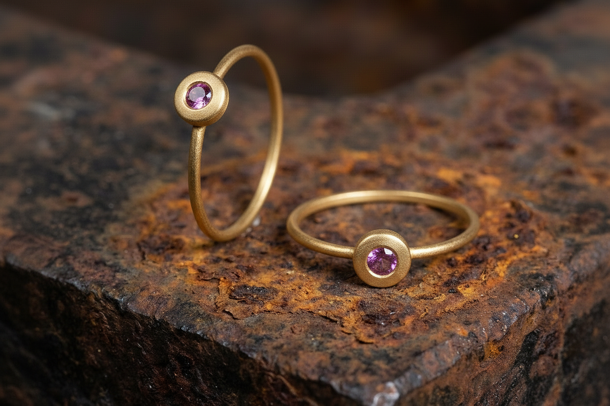 העיצוב המאופק מאפשר לאבן במרכז לבלוט בעדינות ולהוסיף נגיעה של צבע ואור.