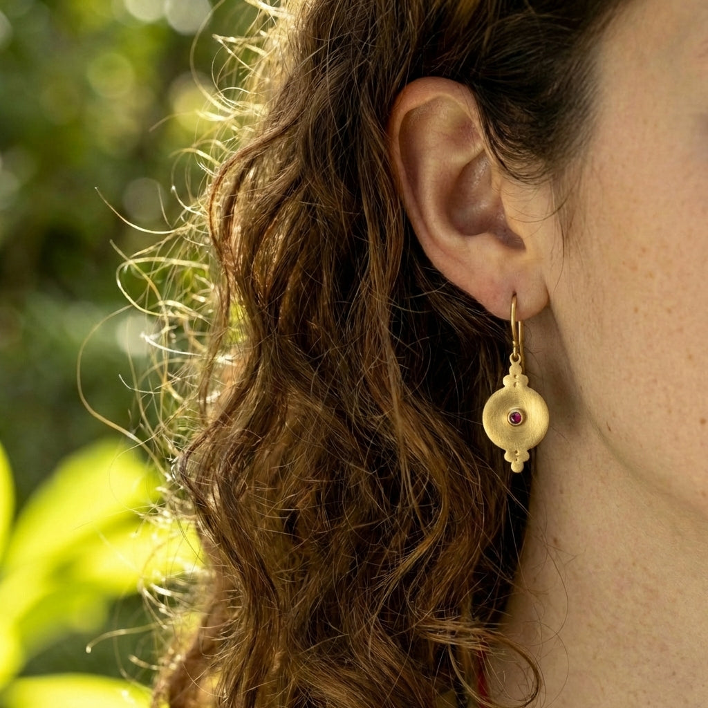 עגילים עדינים אלגנטיים, עשויים זהב 14K בעבודת יד, משובצים אבני חן, לבחירה.