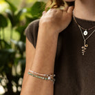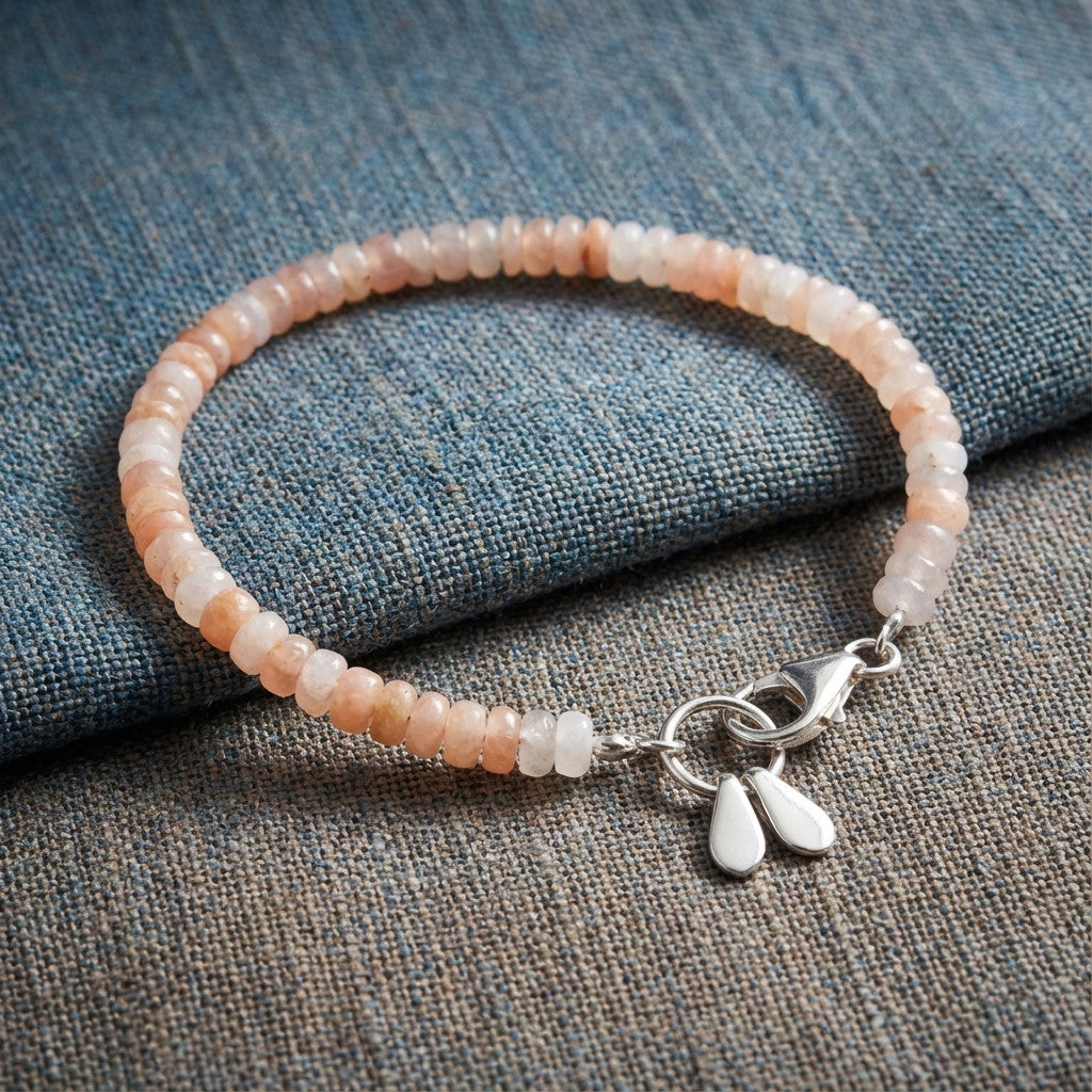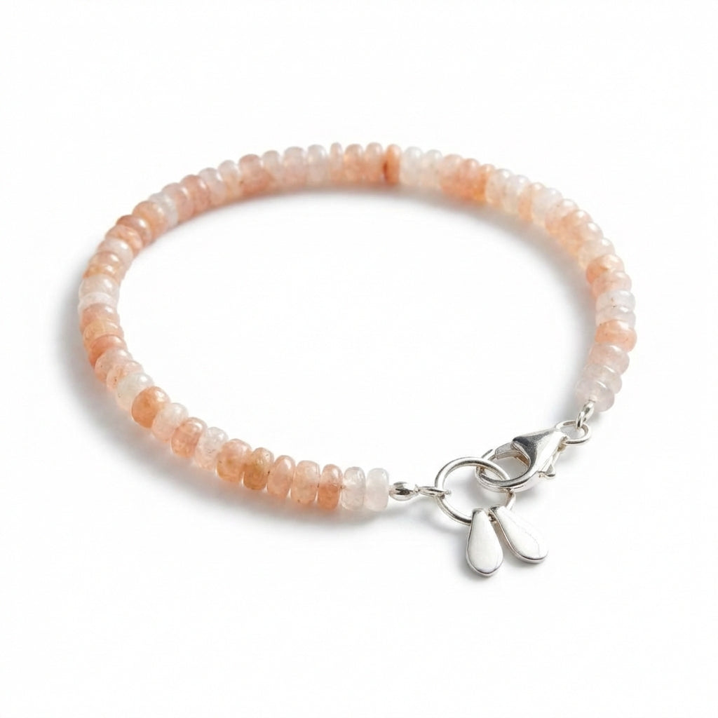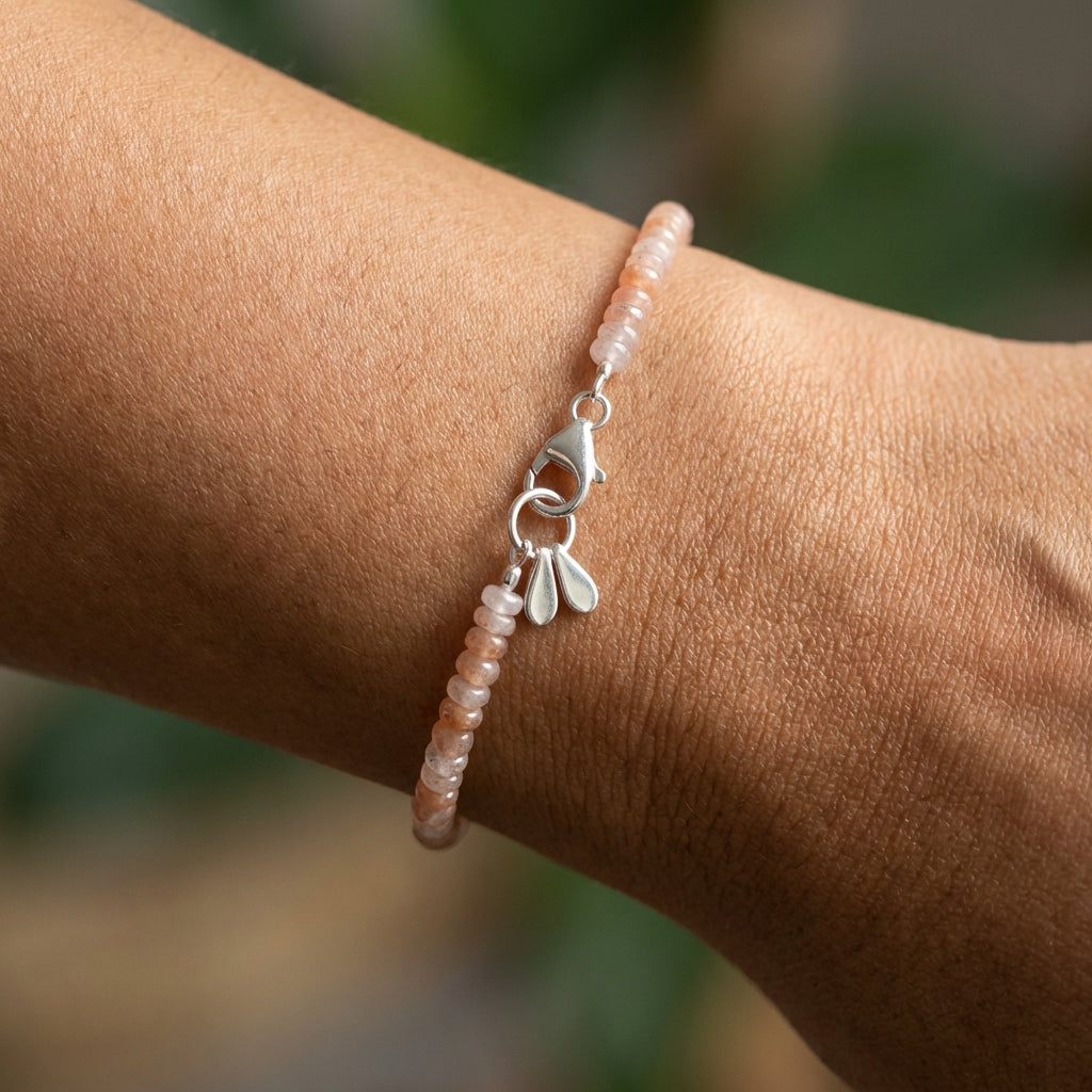 הצמיד מעוטר בשתי טיפות כסף 925 עדינות התלויות לצד הסוגר, המוסיפות תנועה עדינה ונגיעה עיצובית ייחודית. עיצוב מינימליסטי ונקי המדגיש את יופיין הטבעי של האבנים ומתאים למראה בוהו עדין או אלגנטי יומיומי.