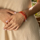 צמיד כפול מאבני קוראל טבעיות, בעיצוב עשיר. הגוון האדום-חם של הקוראל יוצר נוכחות בוהו-אלגנטית, עם תחושת קיץ ים-תיכוני ונגיעה אתנית עדינה.