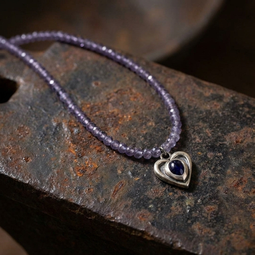 • שרשרת טנזנייט סגולה עם לב משובץ טנזנייט