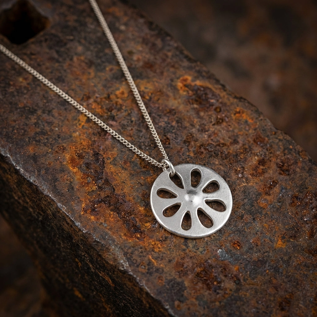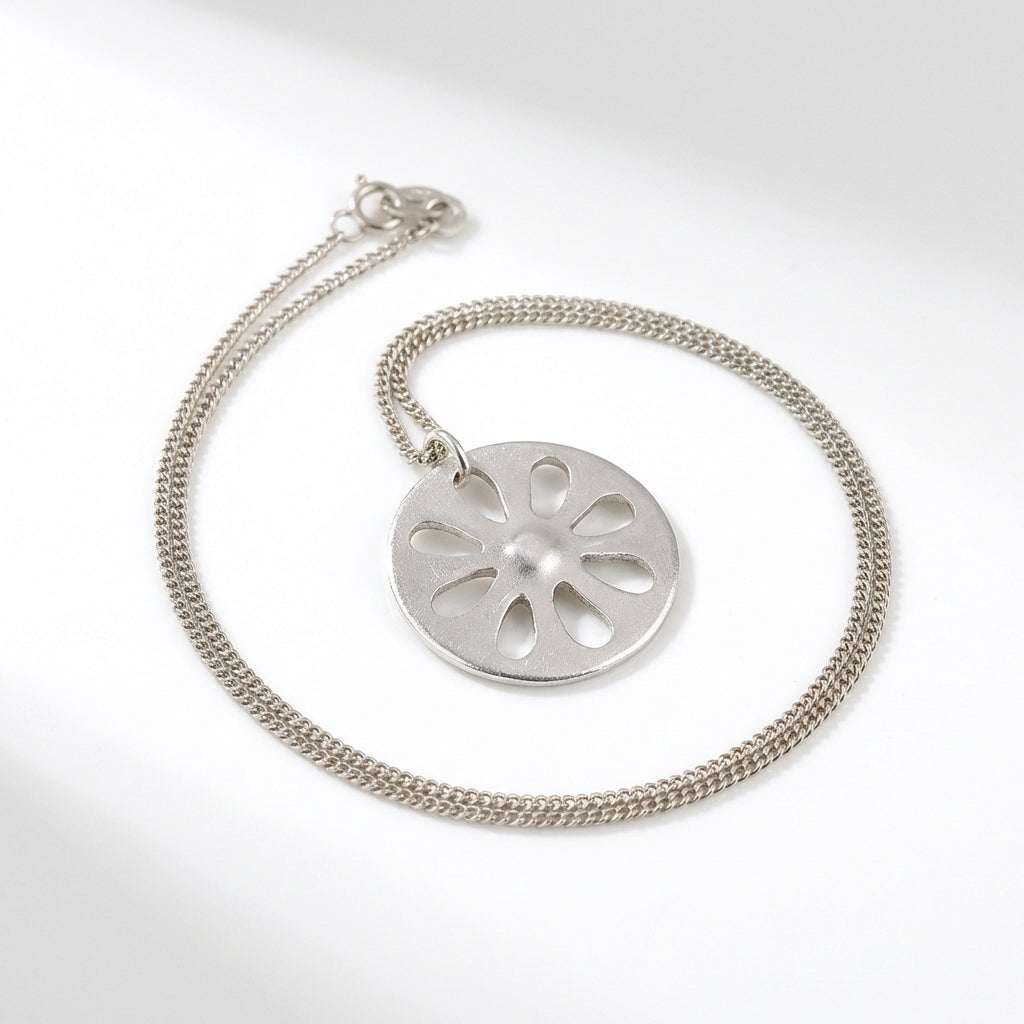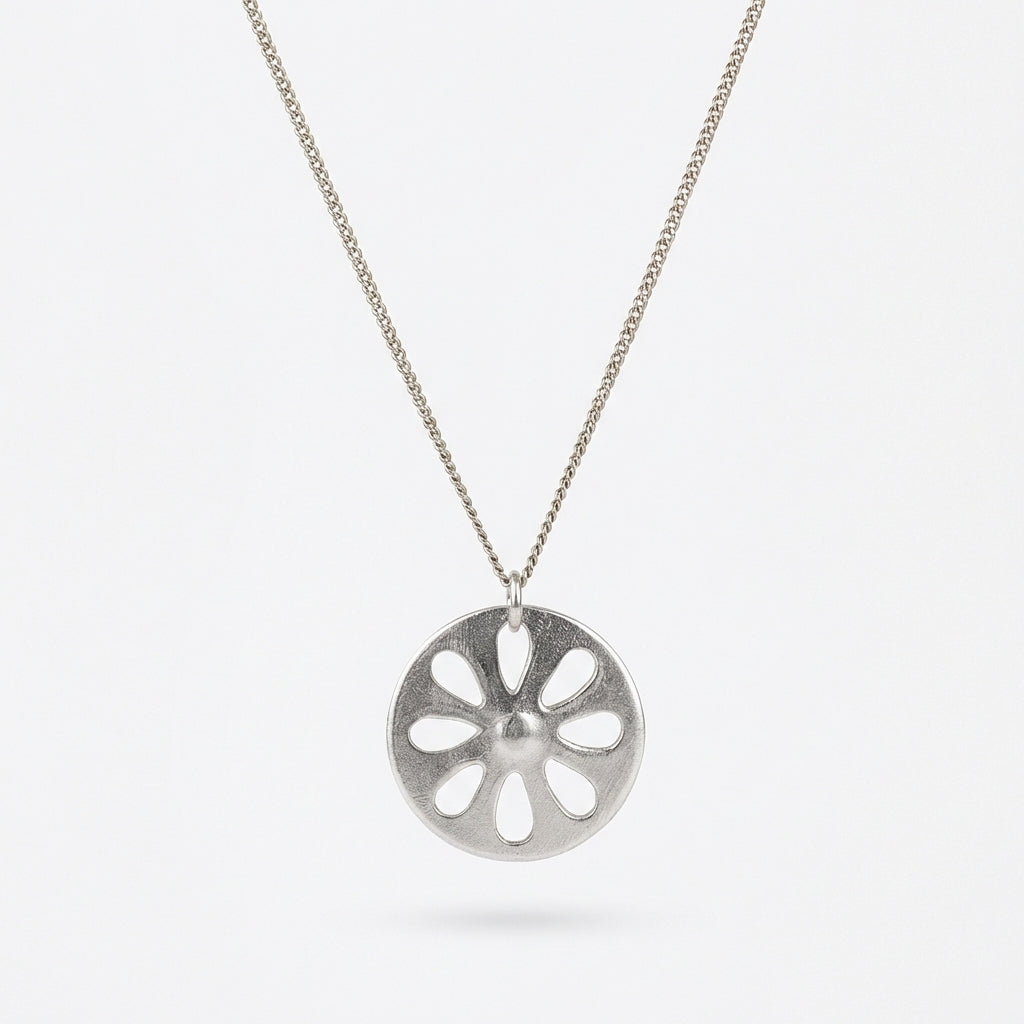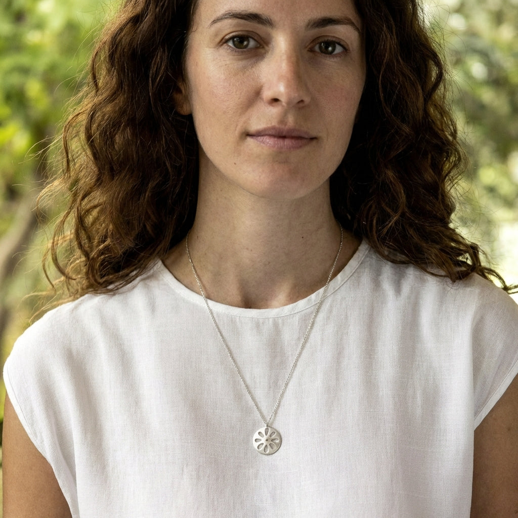 התליון מעוצב כדיסקית עגולה עם חיתוכי לוטוס פתוחים ועדינים, המעניקים תחושת קלילות ואור. מתאים לענידה יומיומית, לשכבות עם שרשראות נוספות או כפריט מרכזי בעל נוכחות שקטה ומדויקת.