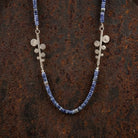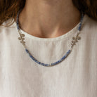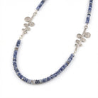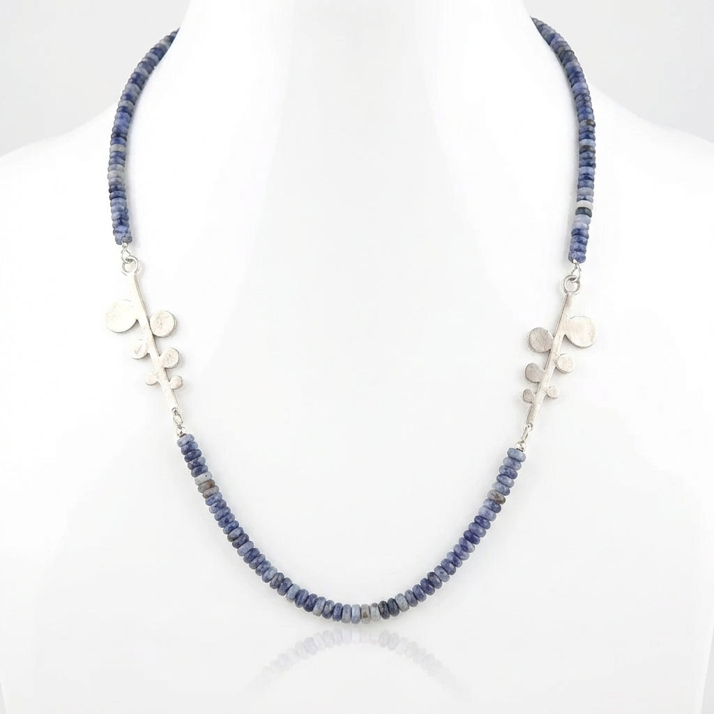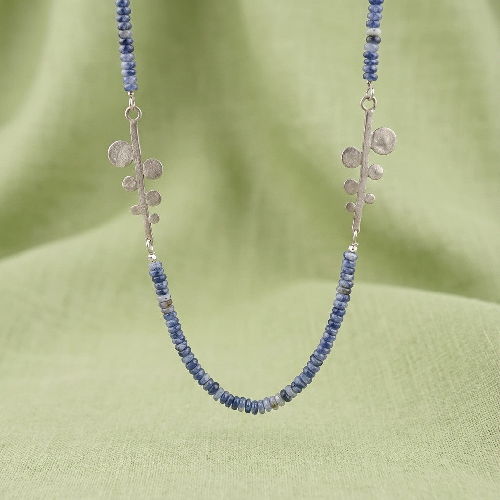 אבני סודלייט טבעיות בגוון כחלחל רך יוצרות מראה רגוע ואלגנטי, המשתלב בהרמוניה עם שני תליוני גבעול מפוסלים בעבודת יד מכסף 925 בגימור מאט.